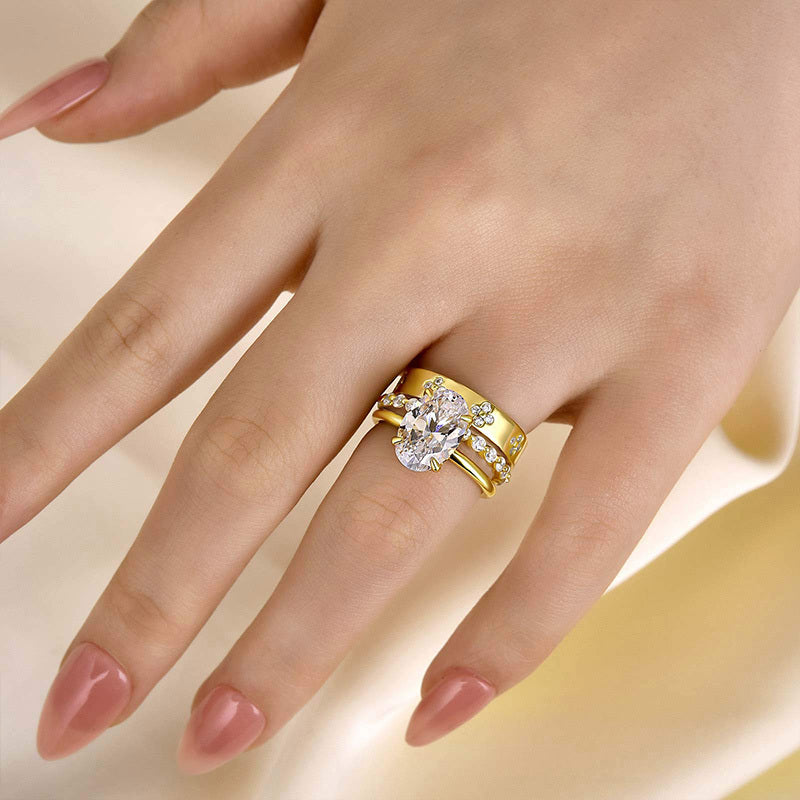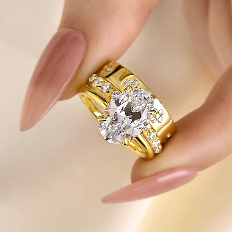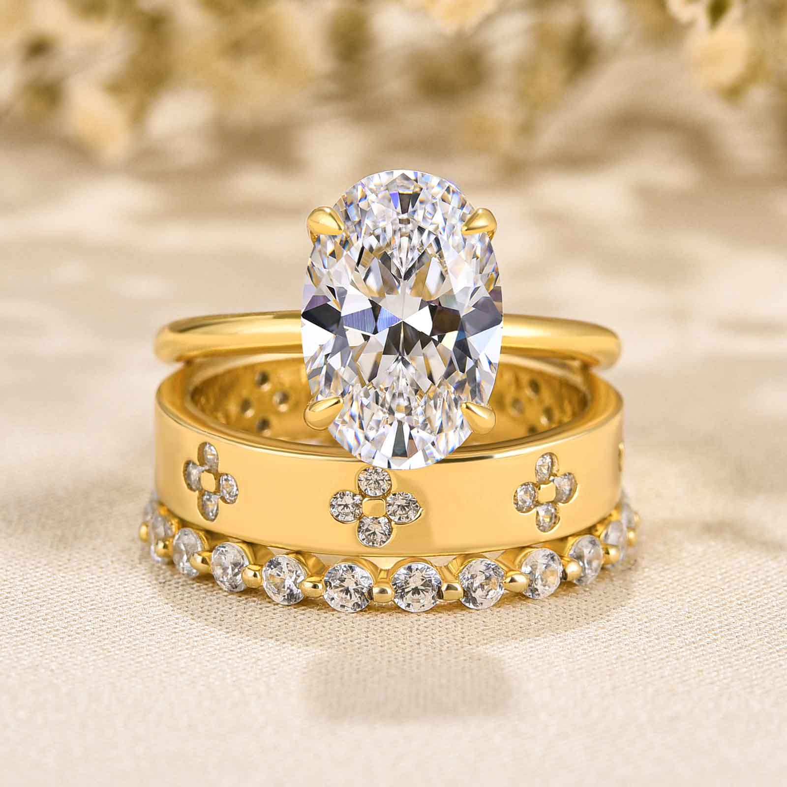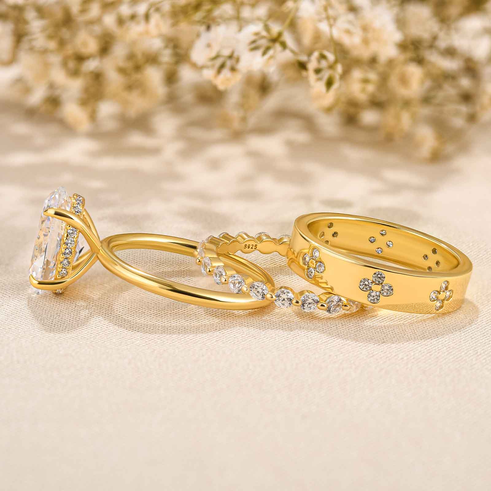 Conjunto nupcial de diamantes simulados ovalados de 3,5 ct, plata de ley chapada en oro amarillo