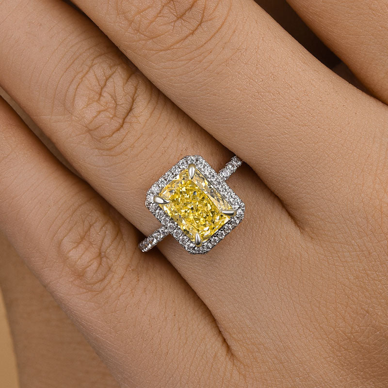 3 Carat Radiant Cut Yellow Stone Halo Ring