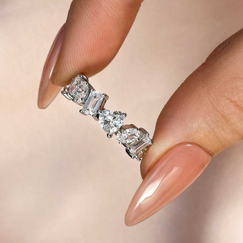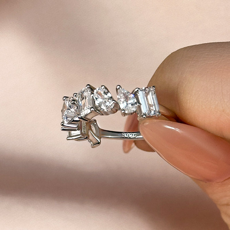 925 Silver White Gold Plated Mixed Cut Diamond Band