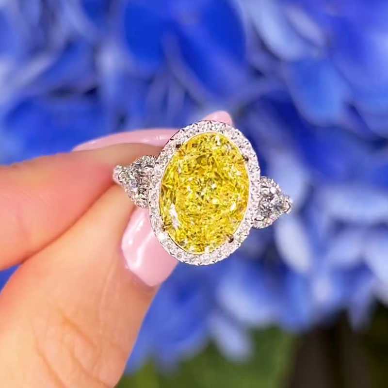 3 Carat Oval Cut Yellow Stone Engagement Ring White Gold