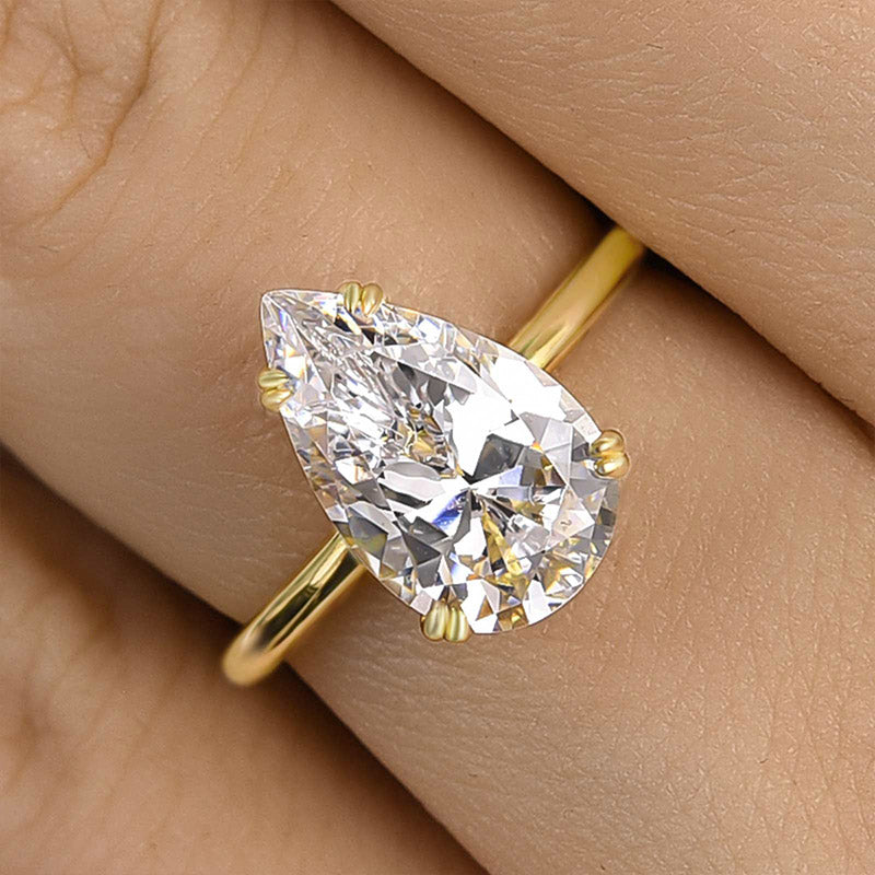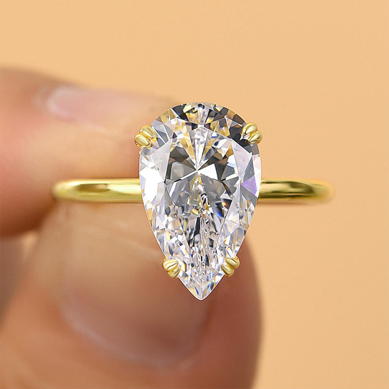 4Ct Pear Cut Solitaire Ring 925 Silver Yellow Gold