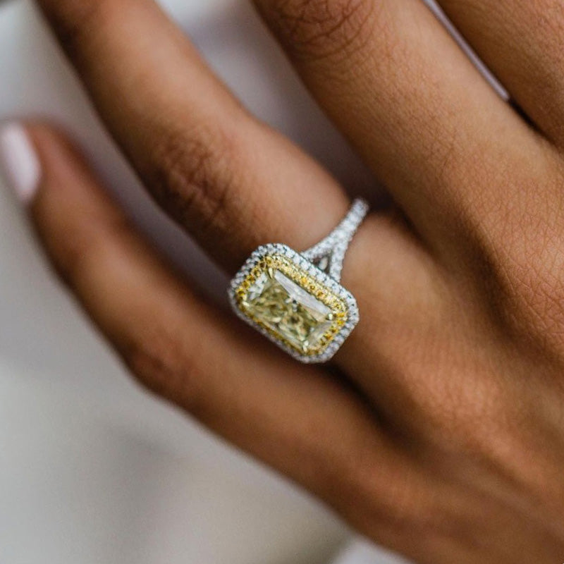 Radiant Cut Yellow Sapphire Engagement Ring Double Halo